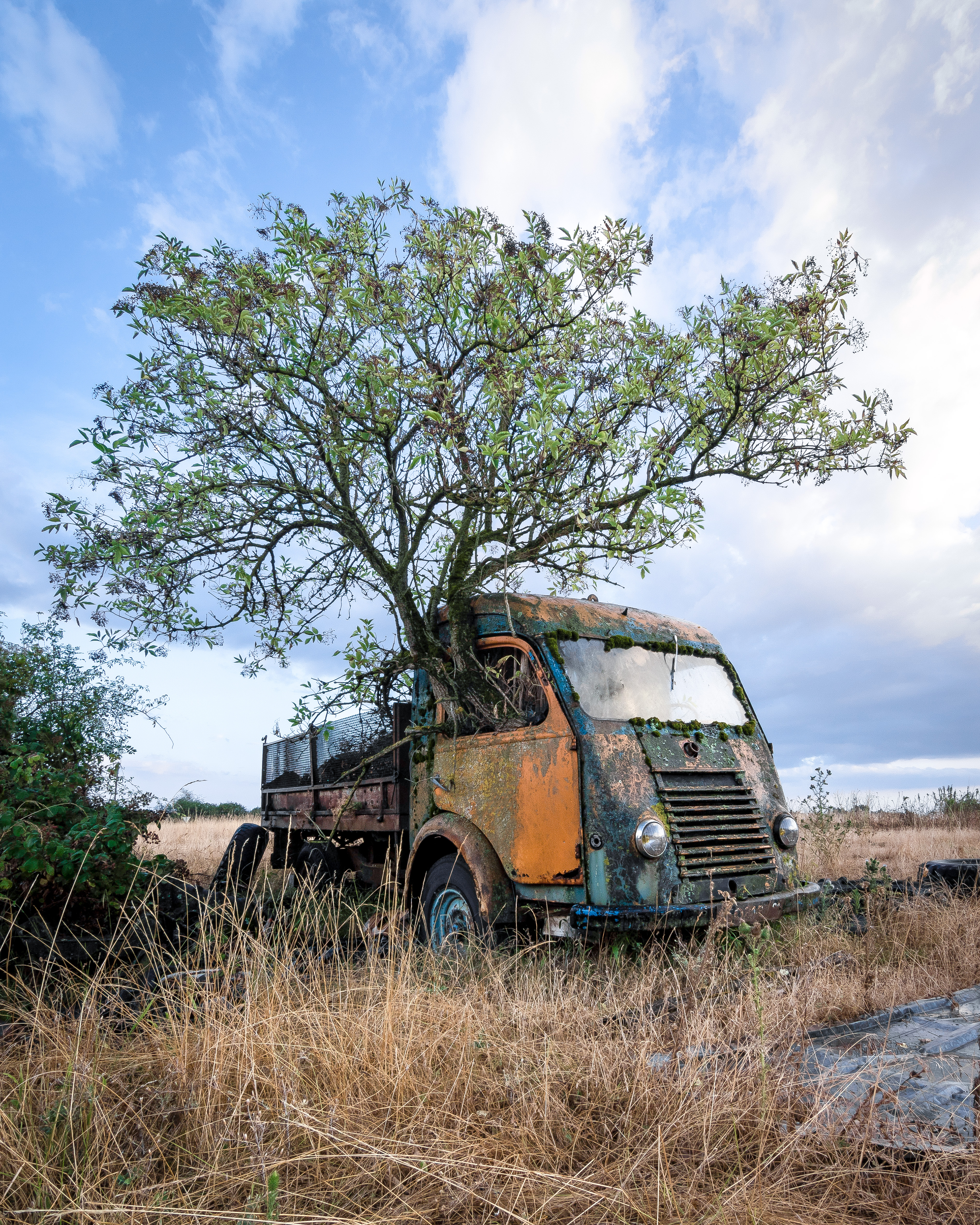 Cette camionnette, cet arbre, ce champ ondulant comme une mer de vagues … C’est à cet instant que je suis tombé amoureux de la photographie … et des lieux oubliés.