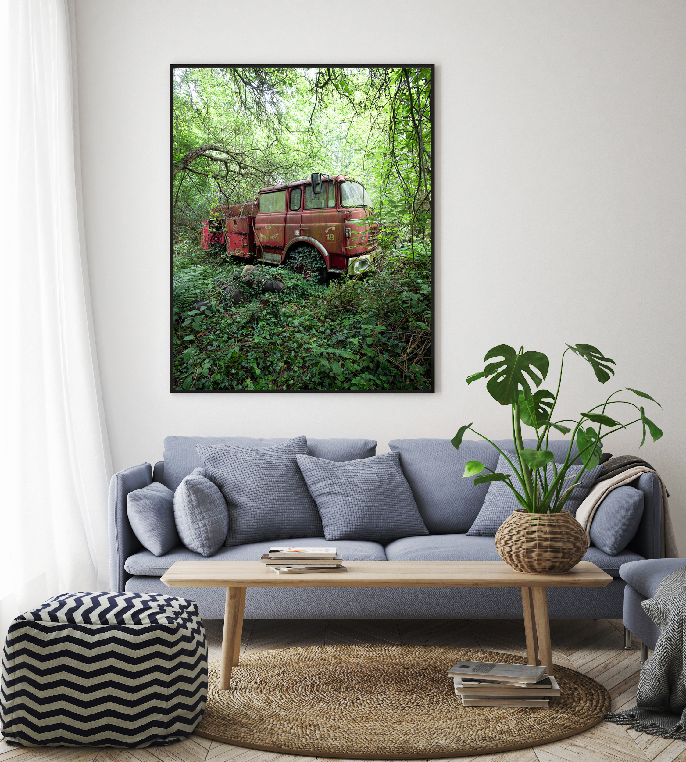 Quand je l’ai découvert, j’ai été immédiatement frappé par sa puissance tranquille. Ce véhicule a sans doute sauvé des vies, traversé des flammes, couru dans l’urgence. Et aujourd’hui, il repose là, dans une retraite paisible, que la nature elle-même semble lui façonner comme un écrin. Un dernier abri. Un adieu en douceur.